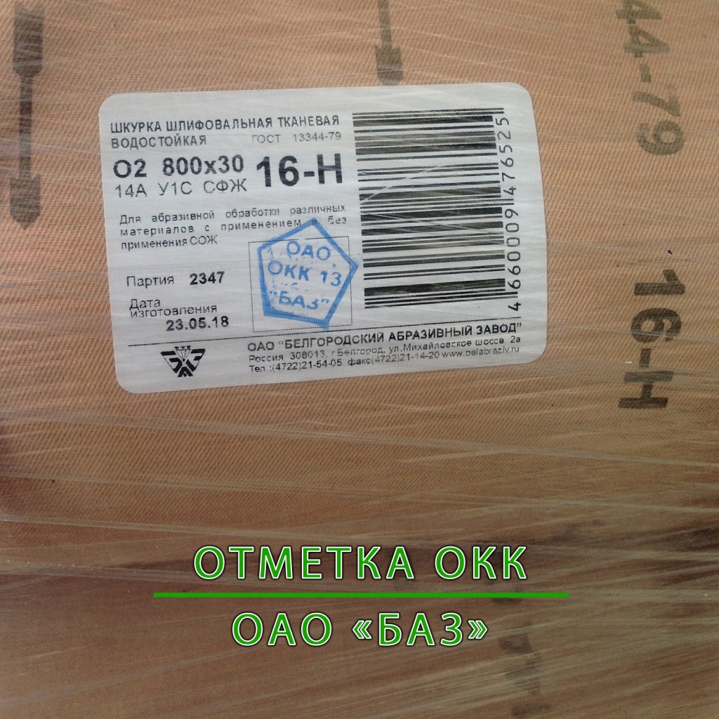4) На этикетке рулона оригинальной шлифовальной шкурки должен присутствовать "штамп ОКК", подтверждающий качество продукции.